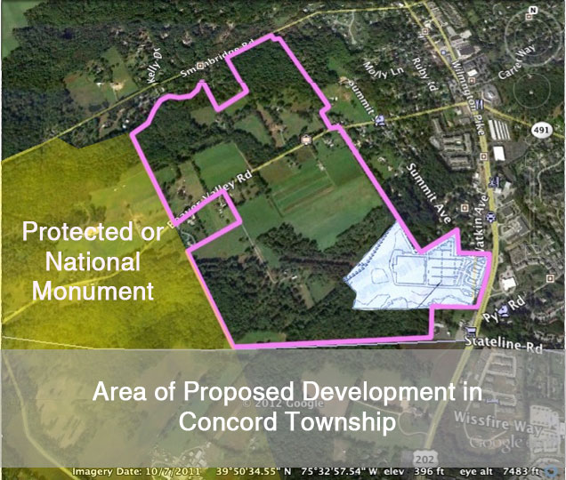This ancient valley with its unspoiled meadows and rolling hills now stand in the way of a chain saw, a bulldozer, and a concrete truck. The fate of this amazing place hangs on a few short meetings of local politicians whose valuation of the land can be seen in the unprecedented development of Concord Township in the last 13 years, a once rural township which has grown from 10,000 residents in the year 2000 to 17,500 today. It is up to the 5 township supervisors to either accept or reject the rezoning proposal that would allow the developers to destroy the Valley. The Concord supervisors, however, have not had a history in favor of preservation.