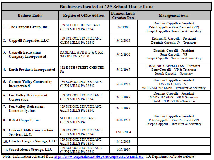 In addition to demonstrating a disdain for community input, two of the supervisors in particular have shown a disdain for zoning law even as they stand ready to approve an outrageous change in Concord zoning. For years, Dominic Cappelli operated a heavy commercial business in a residential neighborhood on School House Lane. Many local Concord residents along School House Lane and Andrien Road opposed this violation of zoning law, taking their case to court. After a lengthy legal fight, a state appellate court issued an order to cease commercial operations on School House Lane. For years, the Concord supervisors ignored the order issued by Judge Doyle and allowed commercial operations to continue in a residential neighborhood. All the while, Dominic Cappelli sat on the Board of Supervisors.