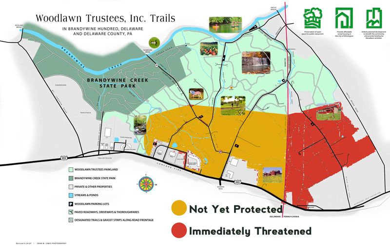 The threatened 324 acres was purchased from various landowners over the last sixty years by an organization called The Woodlawn Trustees whose original mission, as envisioned by its founder William Bancroft, was to protect open space for public recreation. That Woodlawn would sell this tract to developers is a betrayal of not only William Bancroft but those landowners from whom it originally purchased the various pieces of the tract. A DuPont chemist named Merlin Brubaker owned over 50 acres in Beaver Valley and wanted to have it protected. Turning down offers from real estate developers, he instead contacted the Woodlawn Trust in the late 1970s with the conservation of his estate in mind. Stephen Clark, at that time the president of Woodlawn, wrote to Brubaker thanking him for adding his land to that "which Woodlawn tries to protect." Consistently, many landowners along the PA/DE border were assured by Woodlawn that their land would be protected.